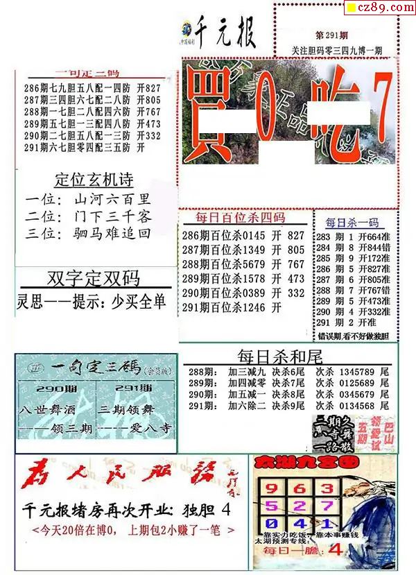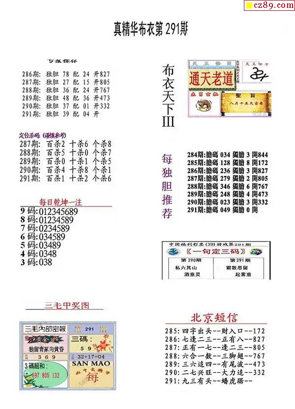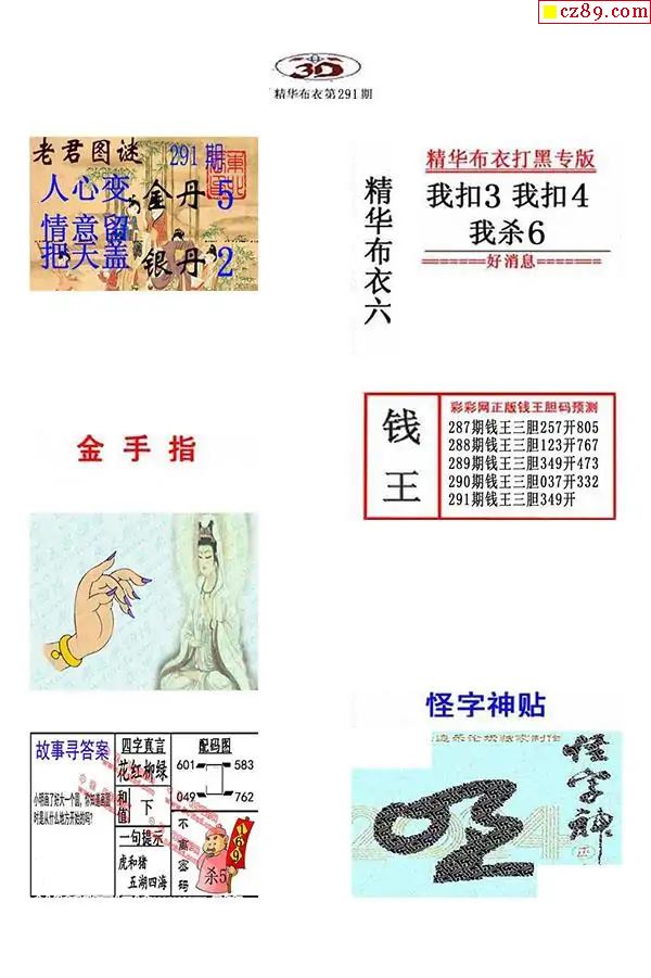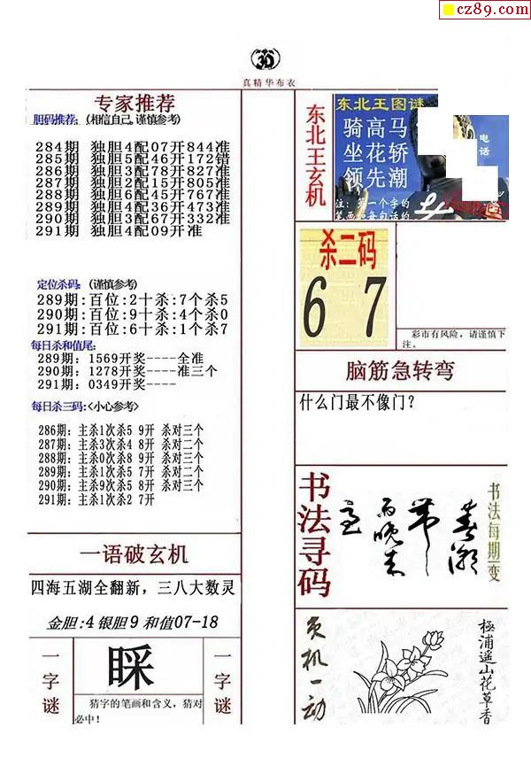 牛彩版3D字谜彩报图25年291期打印版