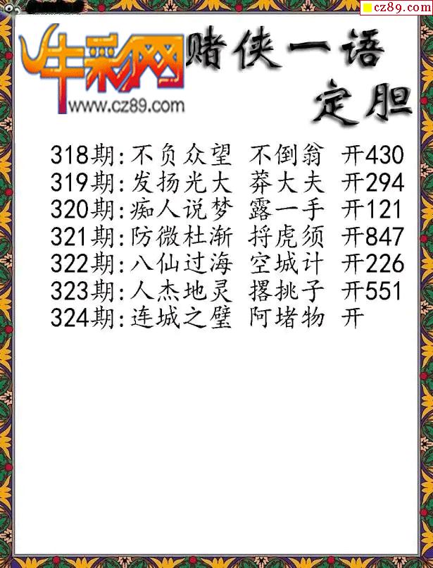 > 福彩3D2025324期彩赌侠一句定三码字图谜